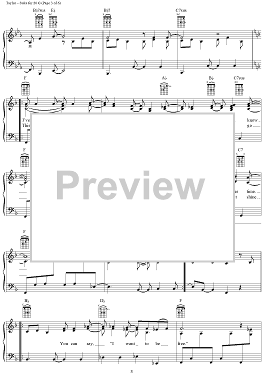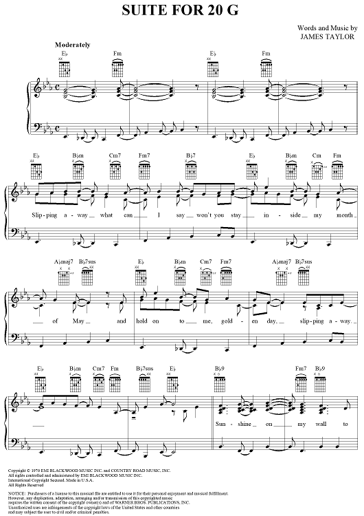 Digital Sheet Music for Suite for 20 G by James Taylor scored for Piano/Vocal/Chords; id:318755
