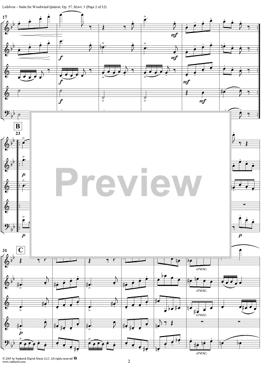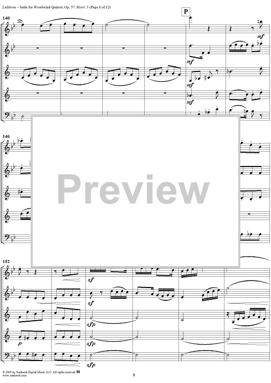 Digital Sheet Music for Suite for Woodwind Quintet, No. 3: Finale - Score by Charles Lefebvre scored for Woodwind Quintet; id:311330