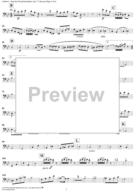 "Suite for Woodwind Quintet, Op. 57 - Bassoon" Sheet Music by Charles Lefebvre