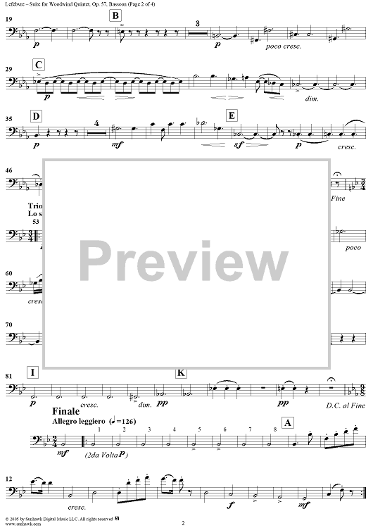 Digital Sheet Music for Suite for Woodwind Quintet, Op. 57 - Bassoon by Charles Lefebvre scored for Woodwind Quintet; id:311335