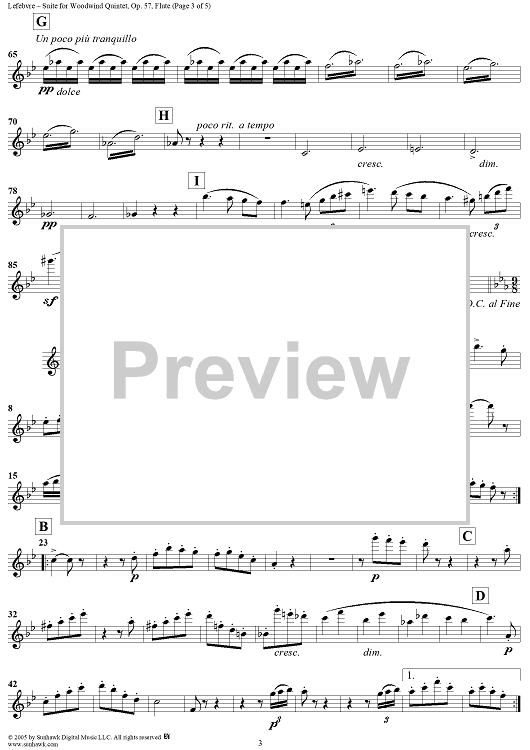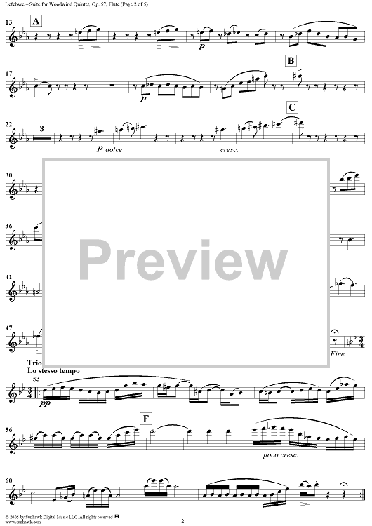 "Suite for Woodwind Quintet, Op. 57 - Flute" Sheet Music by Charles Lefebvre