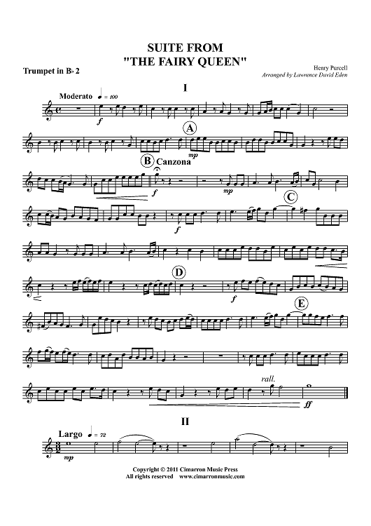 Digital Sheet Music for Suite from "The Fairy Queen" - Trumpet 2 in Bb by Henry Purcell, Lawrence David Eden scored for Brass Quintet; id:425087