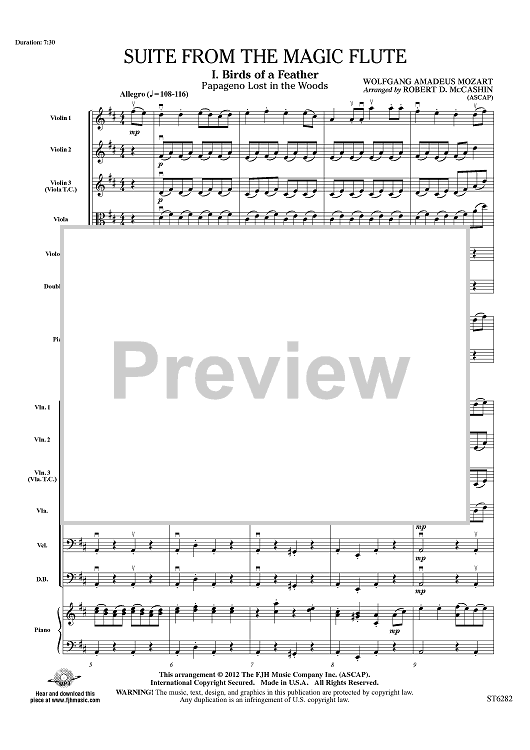 Digital Sheet Music for Suite from the Magic Flute - Score by Wolfgang Amadeus Mozart, Robert D. McCashin scored for String Orchestra; id:432070