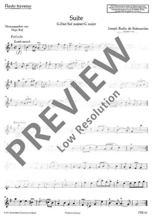 "Suite G Major" Sheet Music by Joseph Bodin de Boismortier