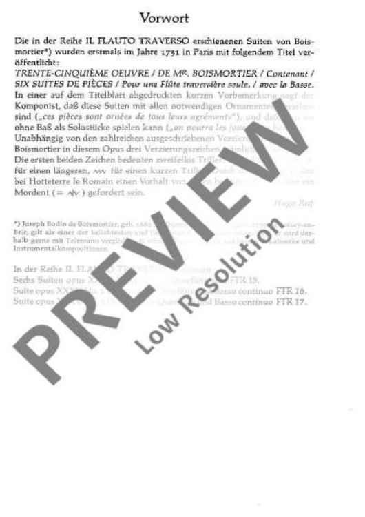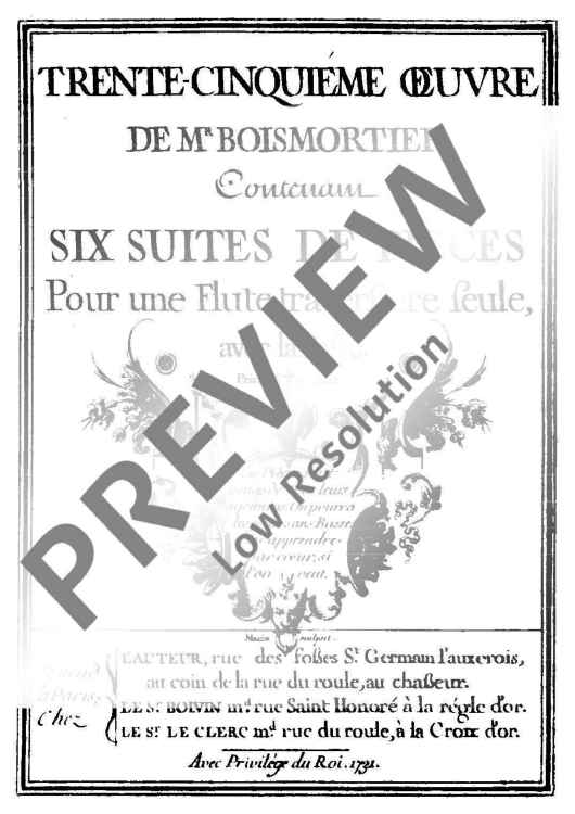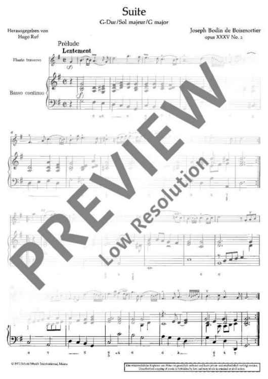 Digital Sheet Music for Suite G Major by Joseph Bodin de Boismortier scored for Flute And Basso Continuo; id:475582