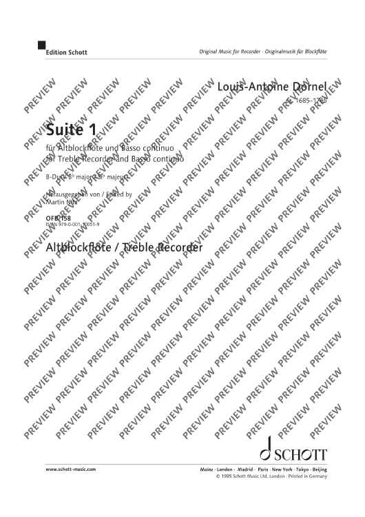Digital Sheet Music for Suite I Bb major in B flat major by Louis-Antoine Dornel scored for Treble Recorder And Basso Continuo; id:482950