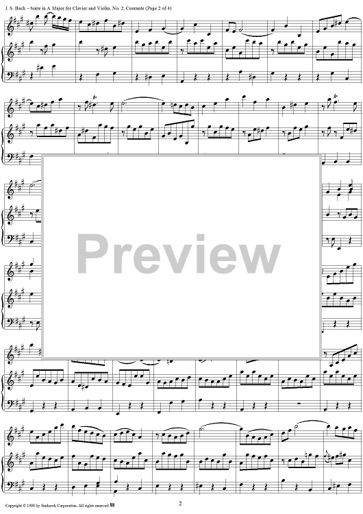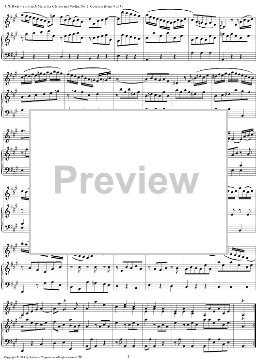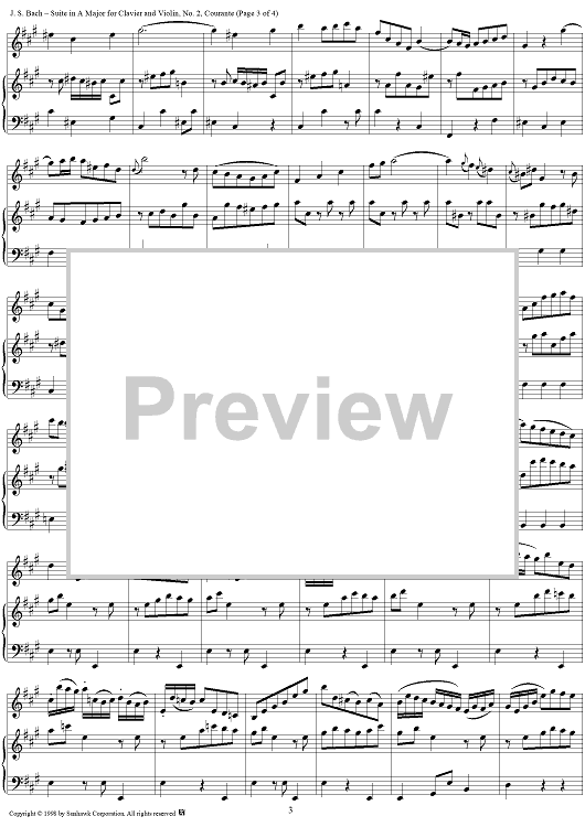 Digital Sheet Music for Suite in A major for Violin and Keyboard, no. 2: Courante by Johann Sebastian Bach scored for Violin/Piano; id:95502
