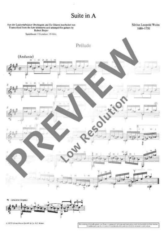 Digital Sheet Music for Suite in A by Silvius Leopold Weiss scored for Guitar; id:475837