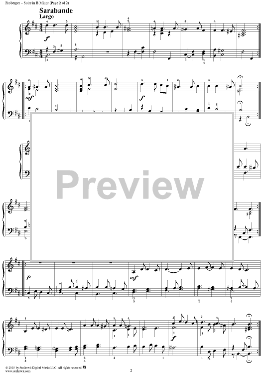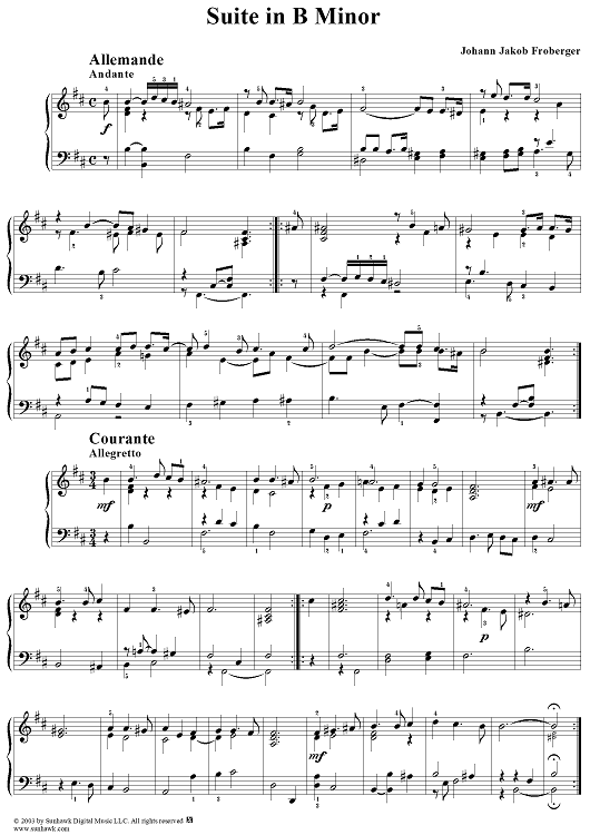 Digital Sheet Music for Suite in B Minor by Johann Jakob Froberger scored for Piano Solo; id:294818