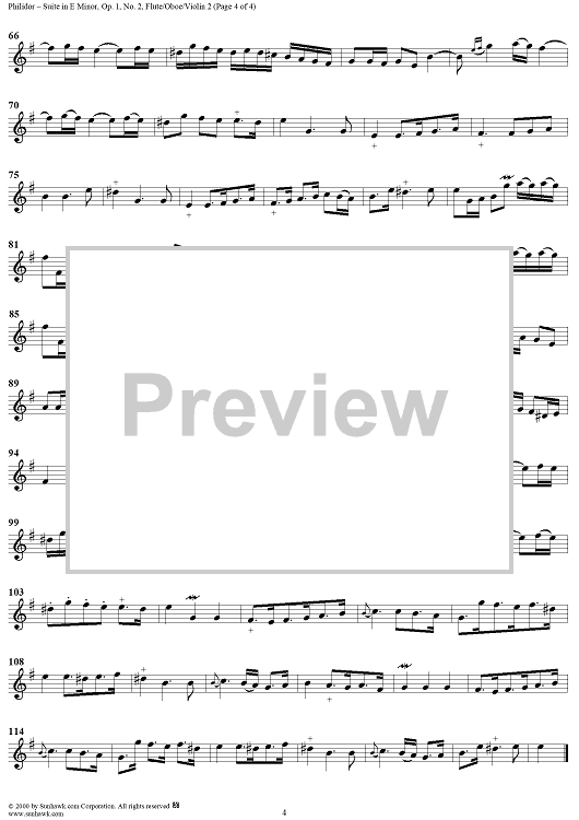 "Suite in E Minor, Op. 1, No. 2 - Flute/Oboe/Violin 2" Sheet Music by Pierre Danican Philidor