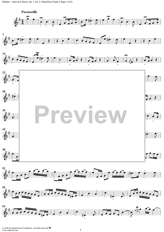 Digital Sheet Music for Suite in E Minor, Op. 1, No. 2 - Flute/Oboe/Violin 2 by Pierre Danican Philidor scored for Trio Sonata; id:254606