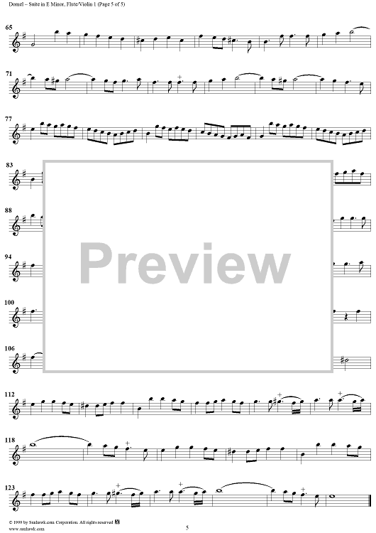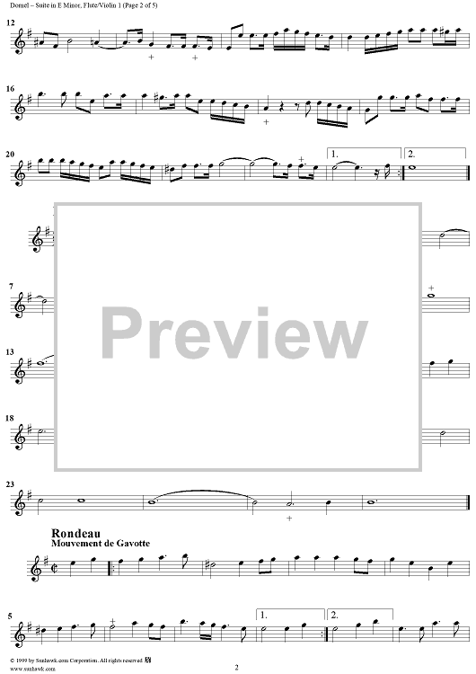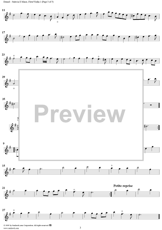 "Suite in E Minor Op. 1, No. 6 - Flute 1/Violin 1" Sheet Music by Louis-Antoine Dornel