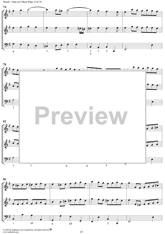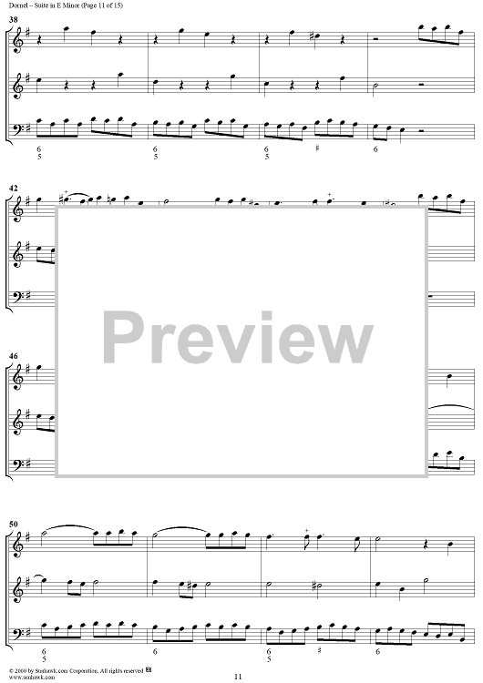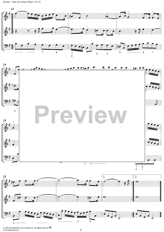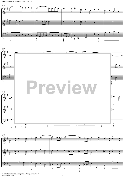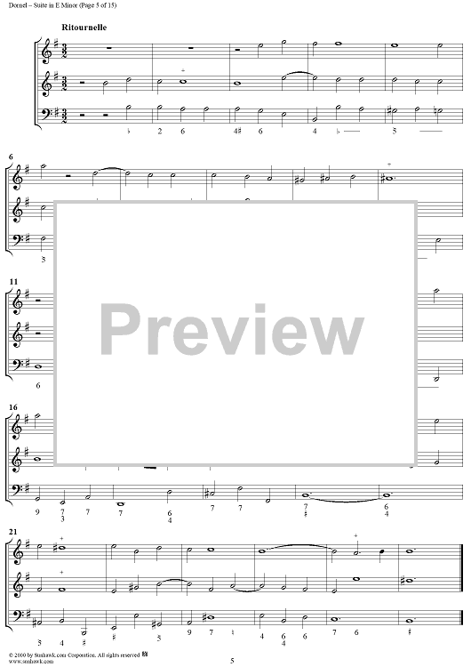 Digital Sheet Music for Suite in E Minor Op. 1, No. 6 - Score by Louis-Antoine Dornel scored for 2 Flutes, 2 Violins, Continuo; id:220570