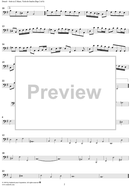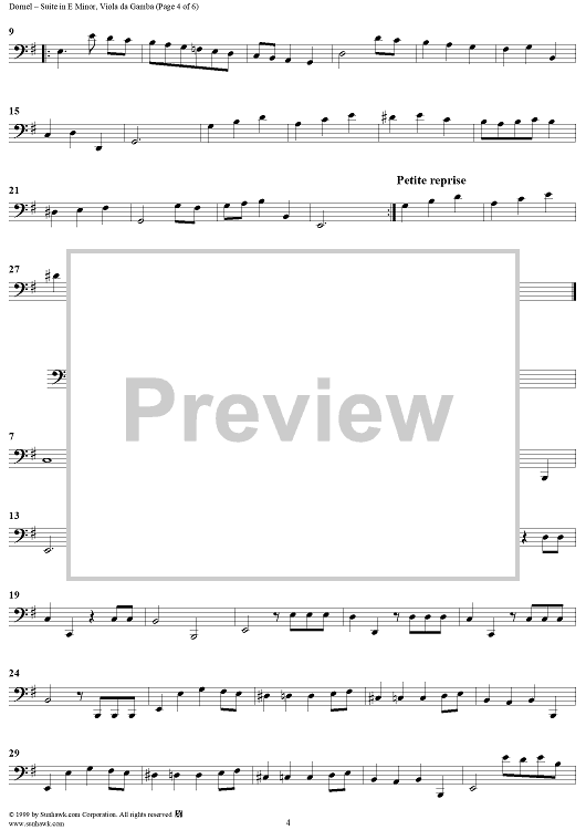 Digital Sheet Music for Suite in E Minor Op. 1, No. 6 - Viola da gamba by Louis-Antoine Dornel scored for 2 Flutes, 2 Violins, Continuo; id:220574