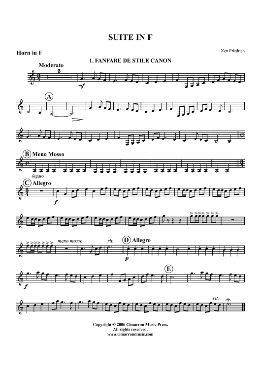 "Suite in F - Horn in F" Sheet Music by Ken Friedrich
