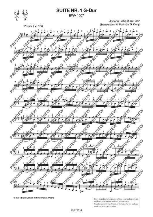 Digital Sheet Music for Suite No. 1 G major by Johann Sebastian Bach scored for Marimba; id:500692