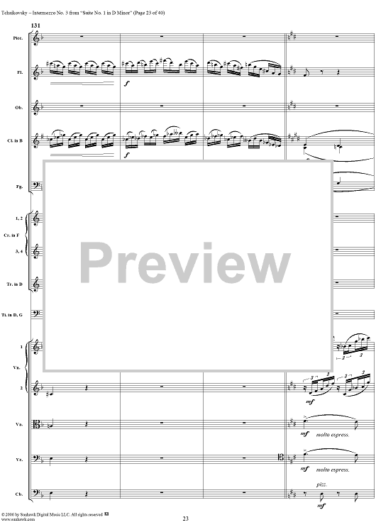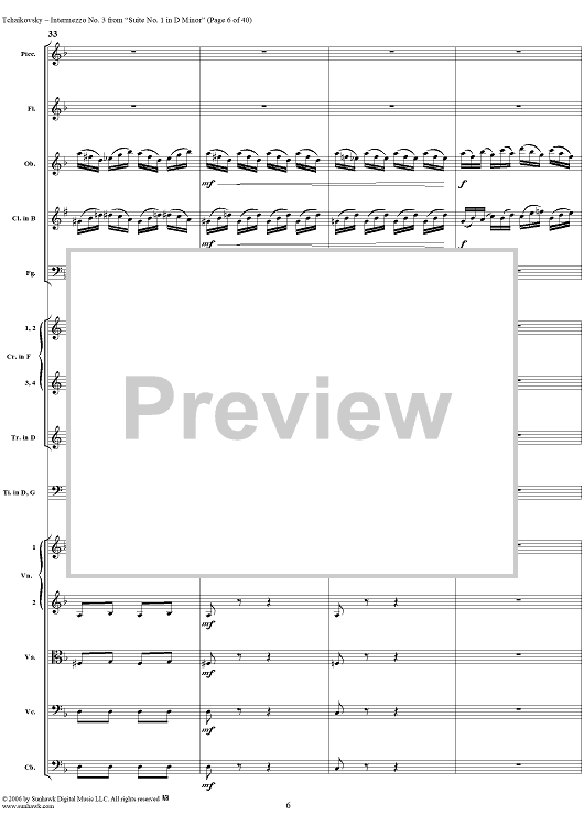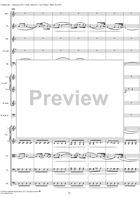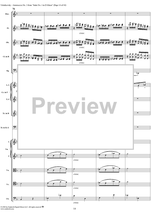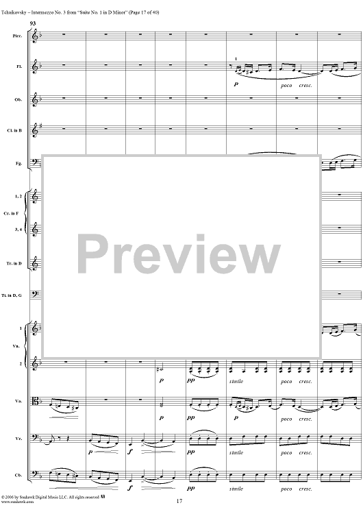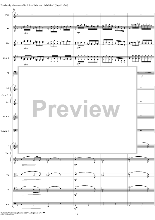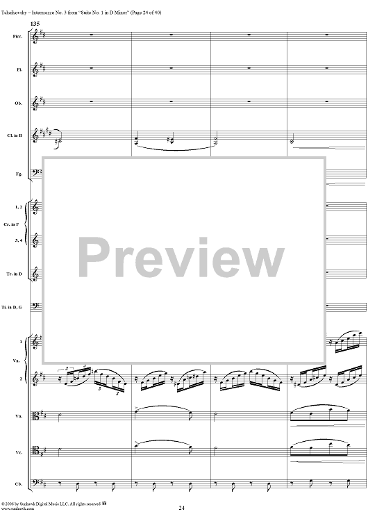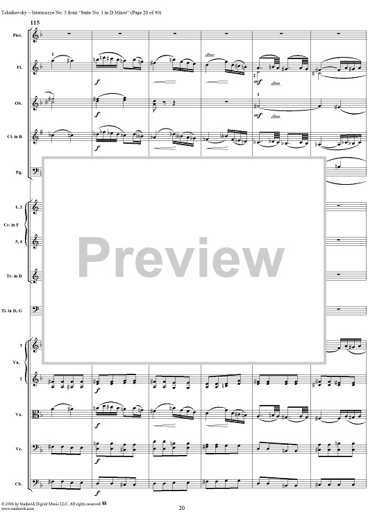 Digital Sheet Music for Suite No. 1 in D minor (d-moll). Movement III, Intermezzo - Full Score by Peter Ilyich Tchaikovsky scored for Orchestra; id:259838