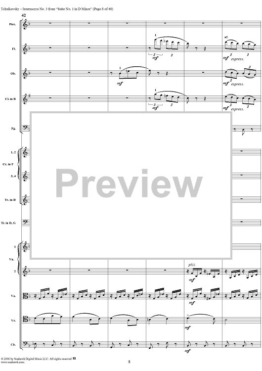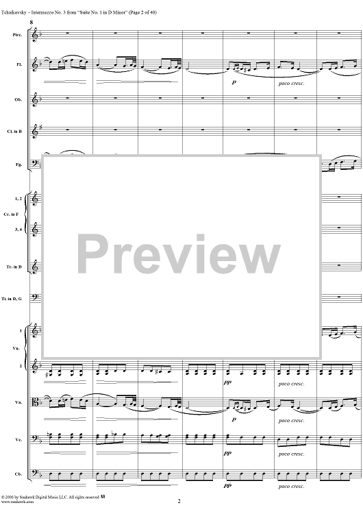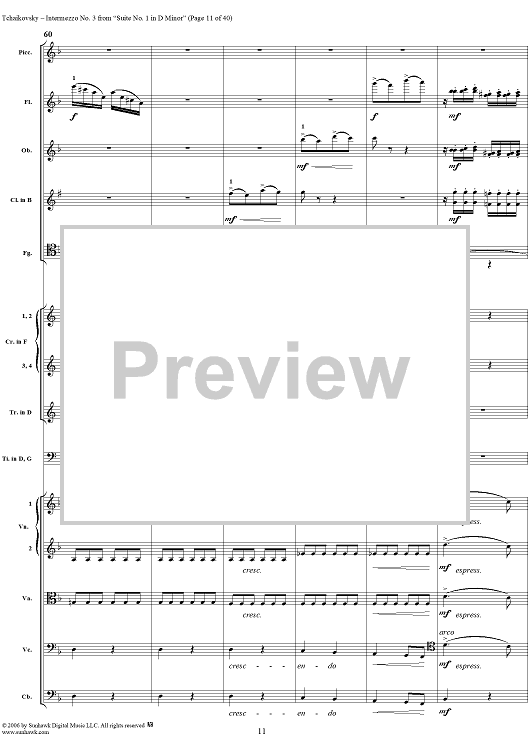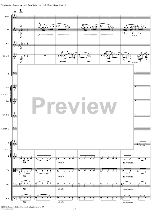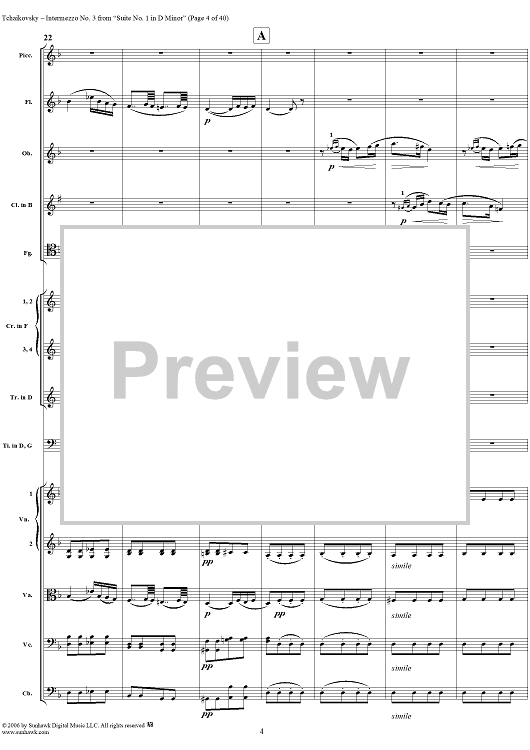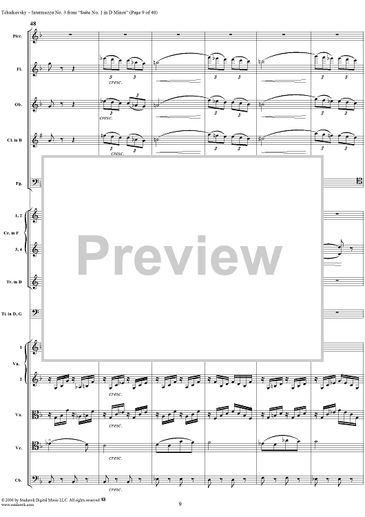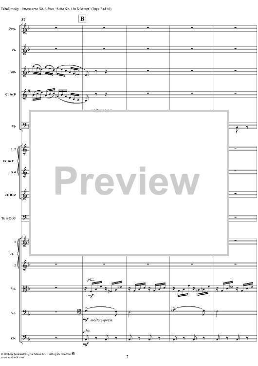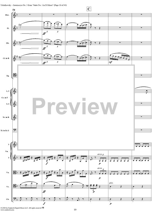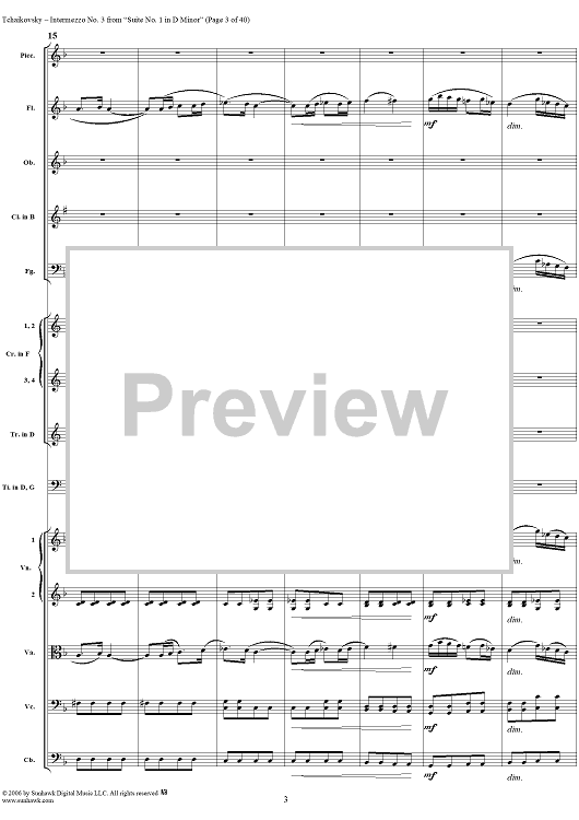 Digital Sheet Music for Suite No. 1 in D minor (d-moll). Movement III, Intermezzo - Full Score by Peter Ilyich Tchaikovsky scored for Orchestra; id:259838