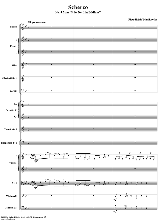 "Suite No. 1 in D minor (d-moll). Movement V, Scherzo - Full Score" Sheet Music by Peter Ilyich Tchaikovsky