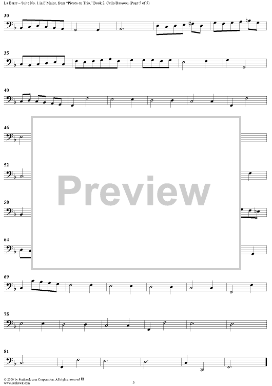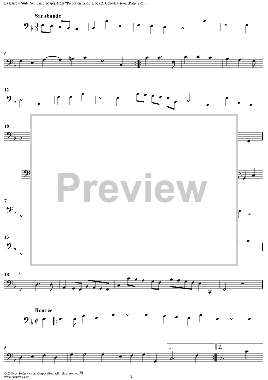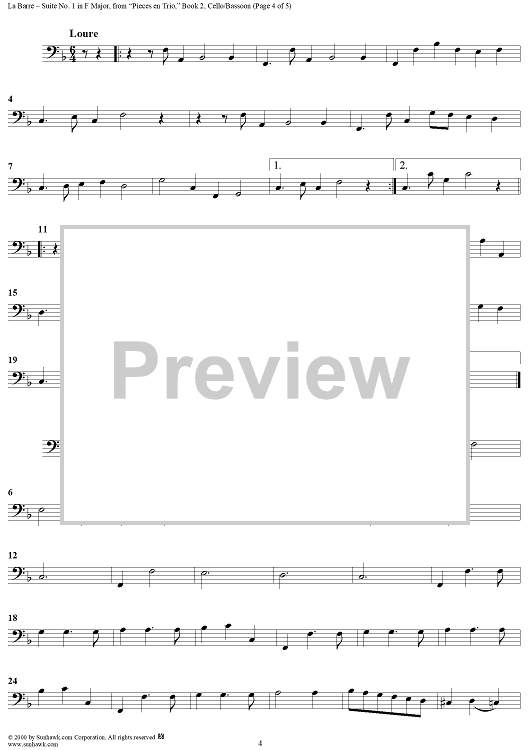 "Suite No. 1 in F Major from "Pieces en Trio" Book 2 - Cello/Bassoon" Sheet Music by Michel de La Barre