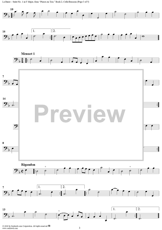 Digital Sheet Music for Suite No. 1 in F Major from "Pieces en Trio" Book 2 - Cello/Bassoon by Michel de la Barre scored for Mixed Trio; id:276592