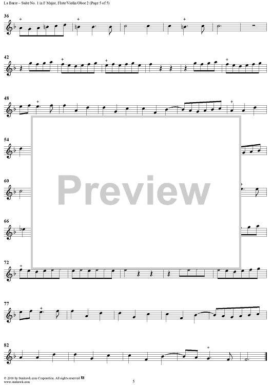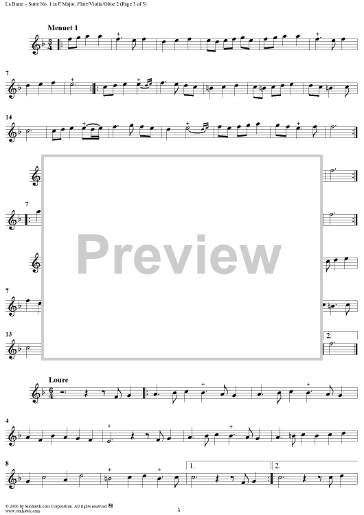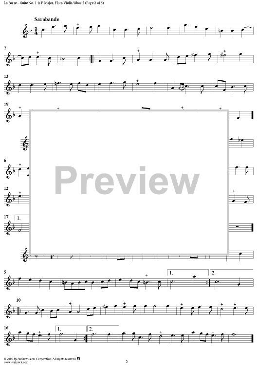 "Suite No. 1 in F Major from "Pieces en Trio" Book 2 - Flute/Oboe/Violin 2" Sheet Music by Michel de la Barre
