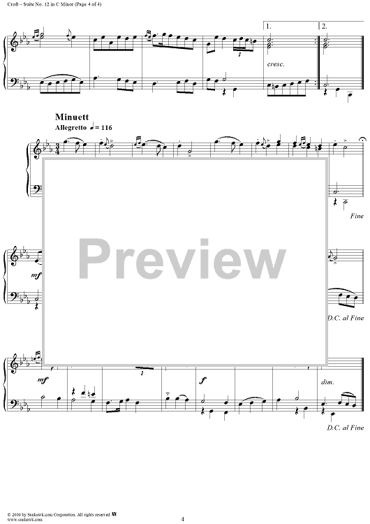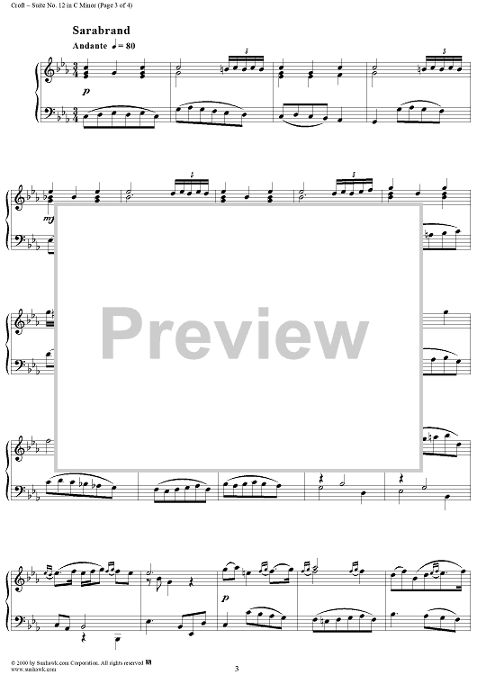 Digital Sheet Music for Suite No. 12 in C Minor by William Croft scored for Piano Solo; id:265456