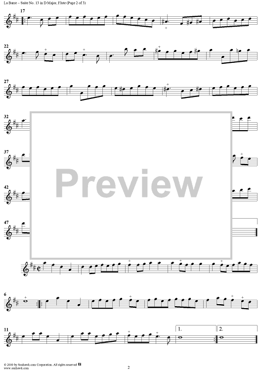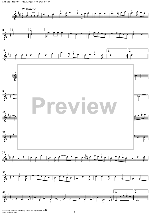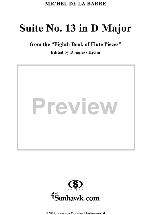 Digital Sheet Music for Suite No. 13 in D Major - Flute by Michel de la Barre scored for Flute/Piano; id:220734