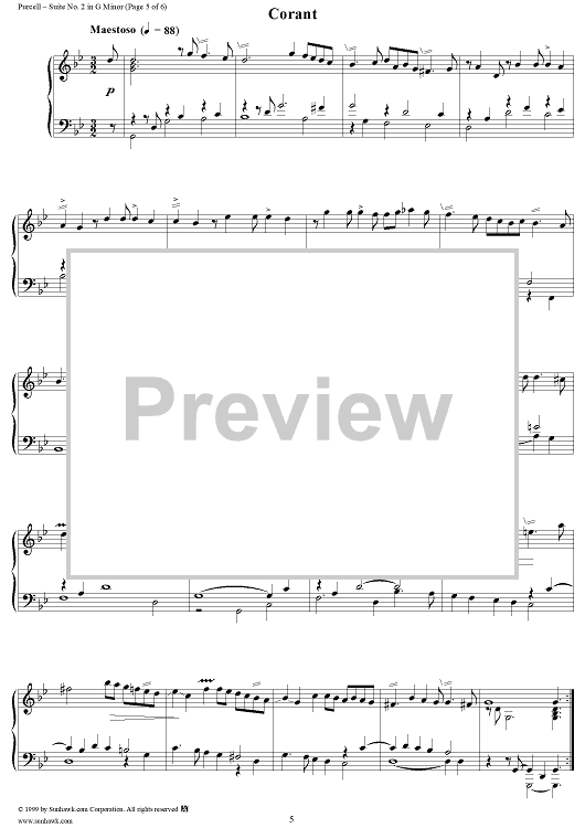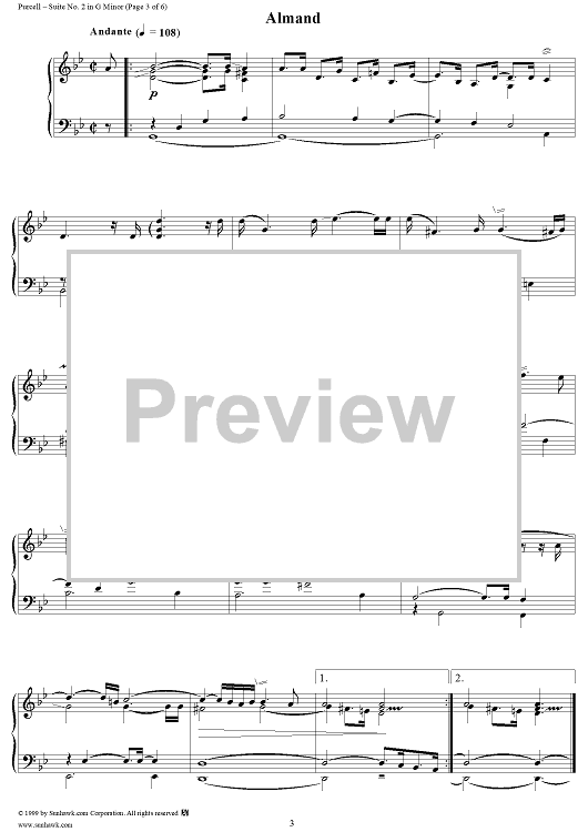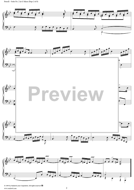 Digital Sheet Music for Suite No. 2 in G Minor by Henry Purcell scored for Piano Solo; id:255056