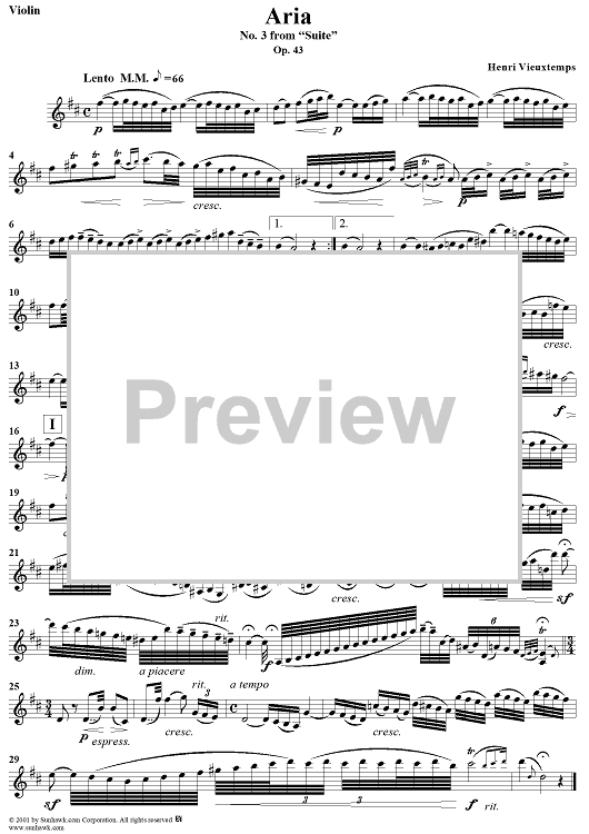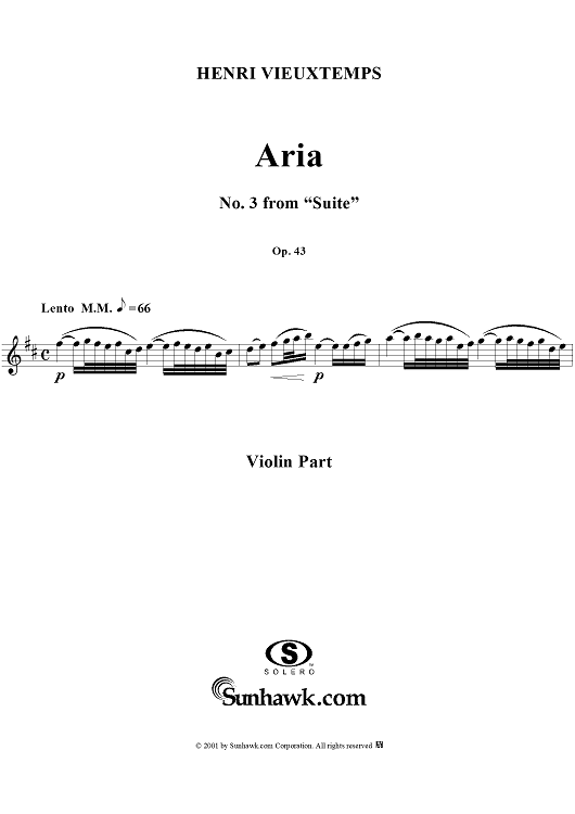"Suite, No. 3: Aria - Violin" Sheet Music by Henri Vieuxtemps