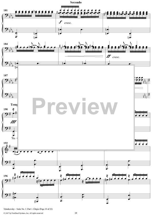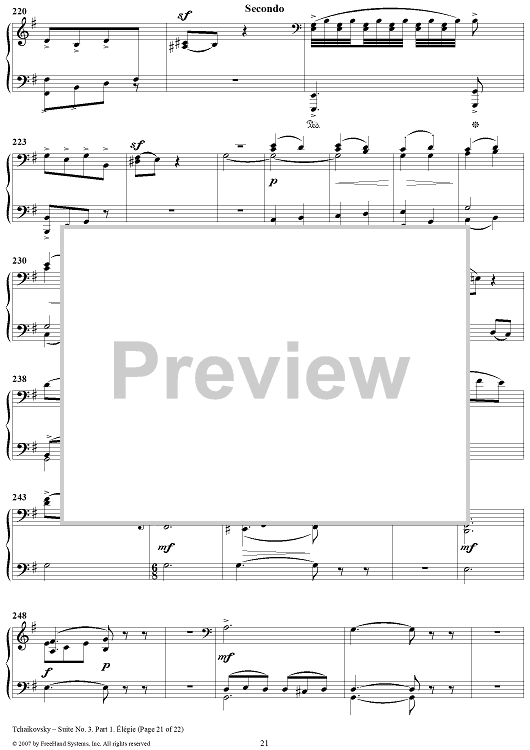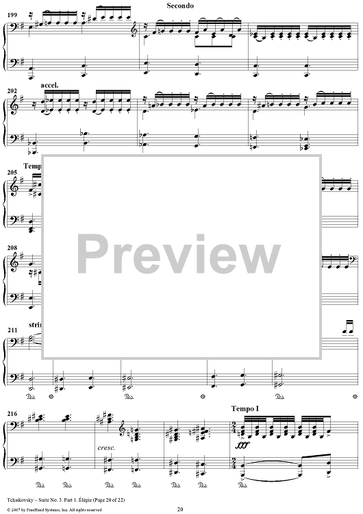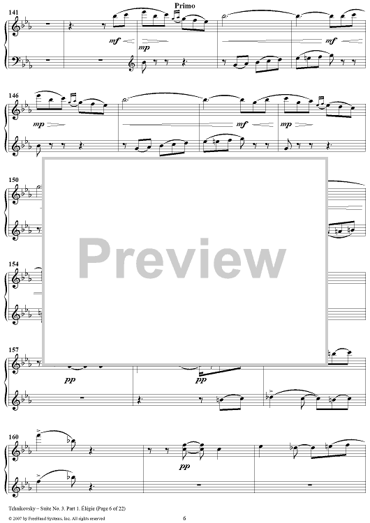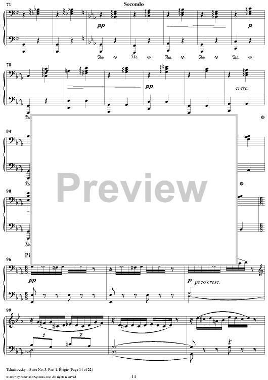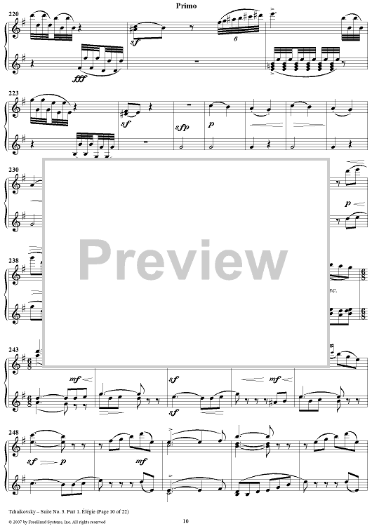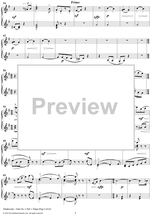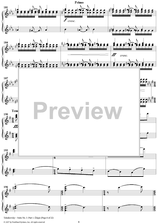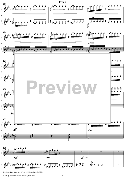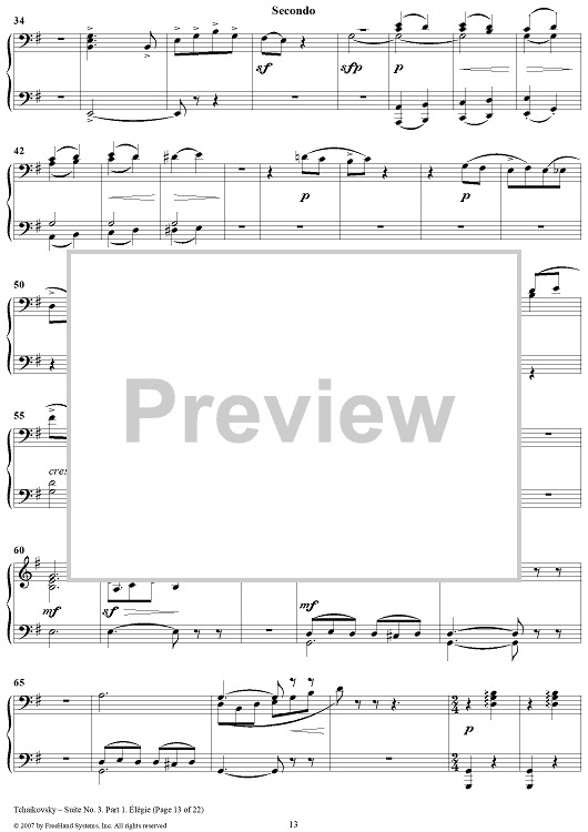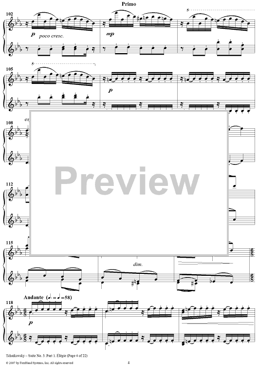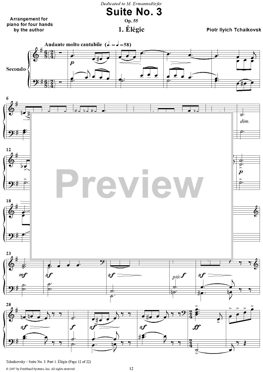 Digital Sheet Music for Suite No. 3 for Orchestra. Part 1. Élégie by Peter Ilyich Tchaikovsky scored for 1 Piano, 4 Hands; id:364644