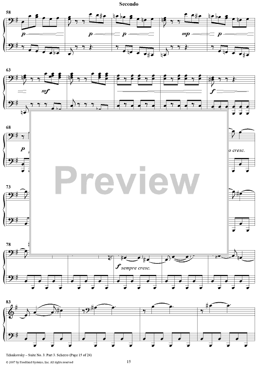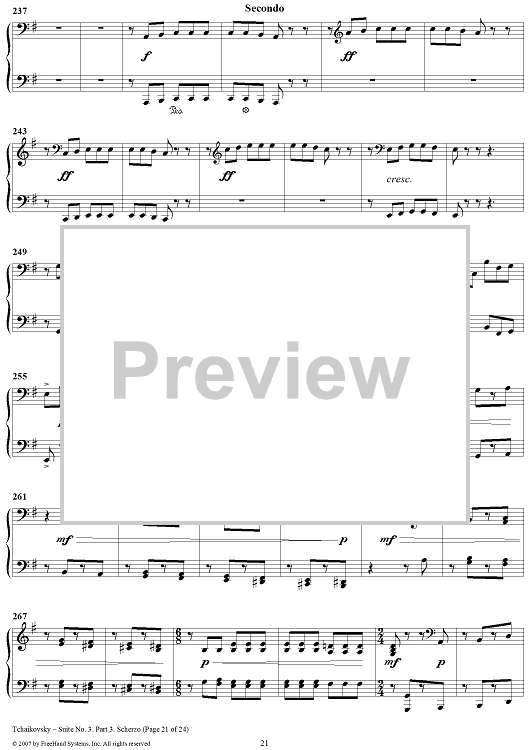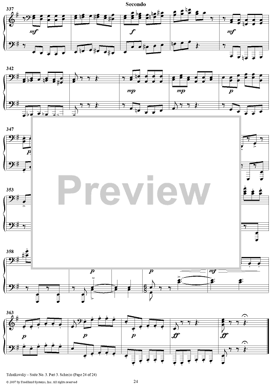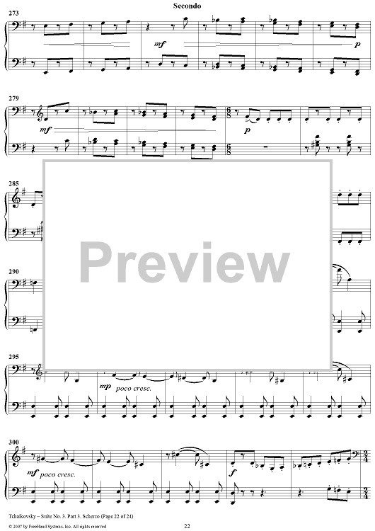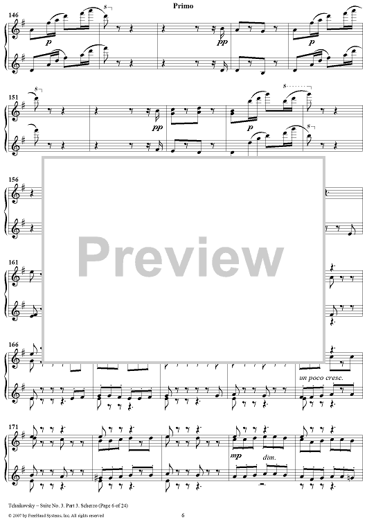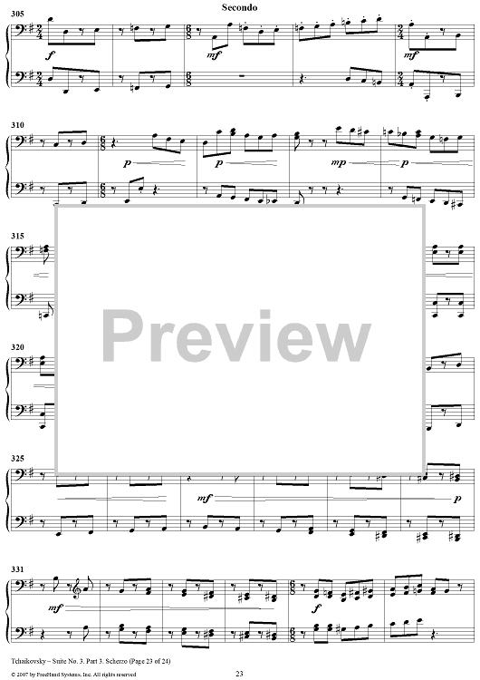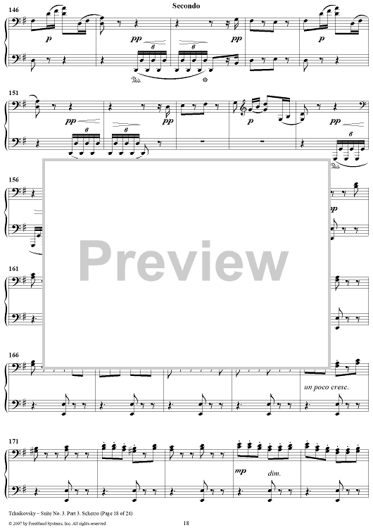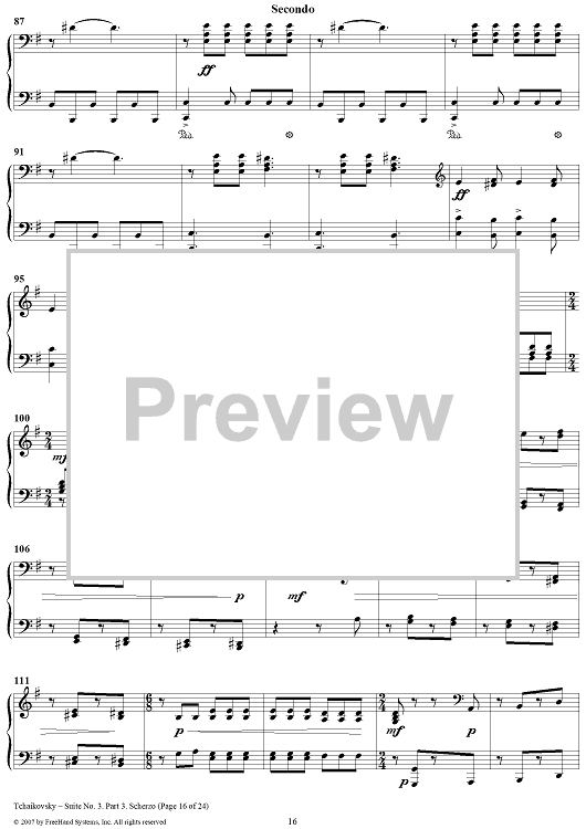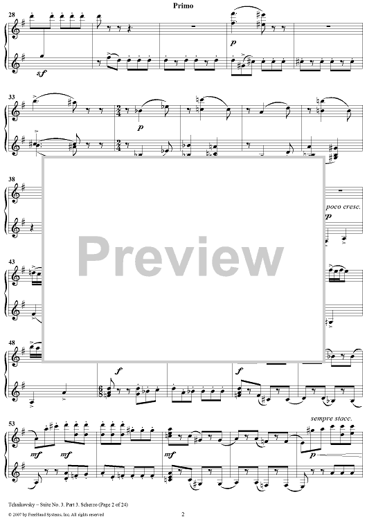 Digital Sheet Music for Suite No. 3 for Orchestra. Part 3. Scherzo by Peter Ilyich Tchaikovsky scored for 1 Piano, 4 Hands; id:364647