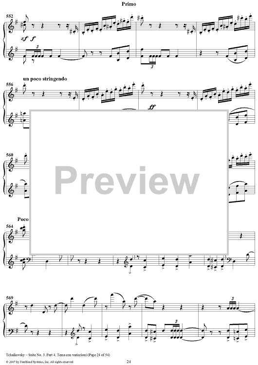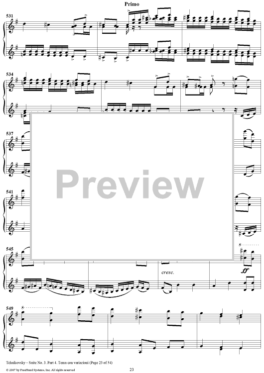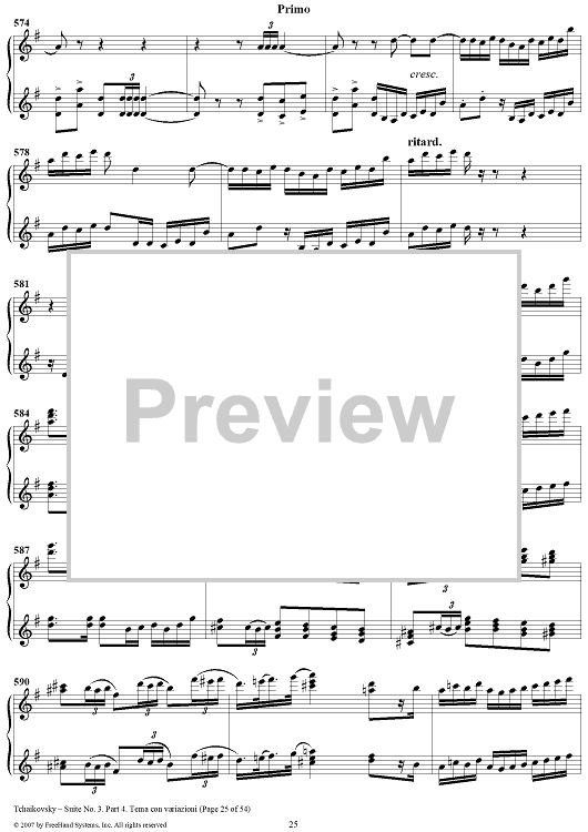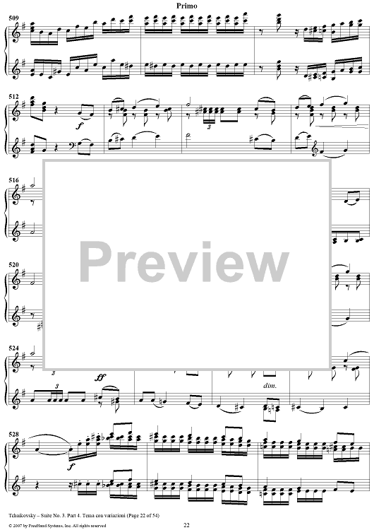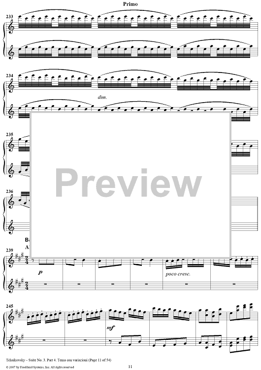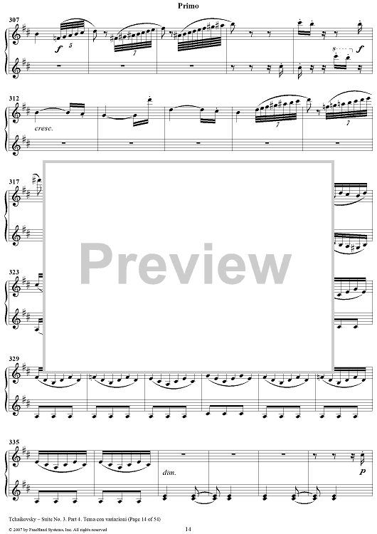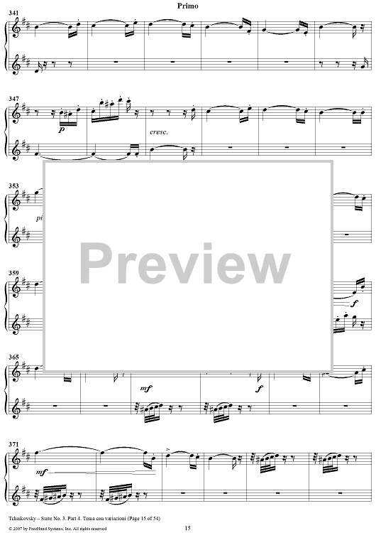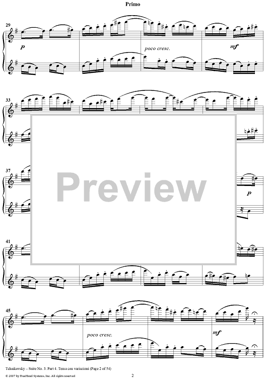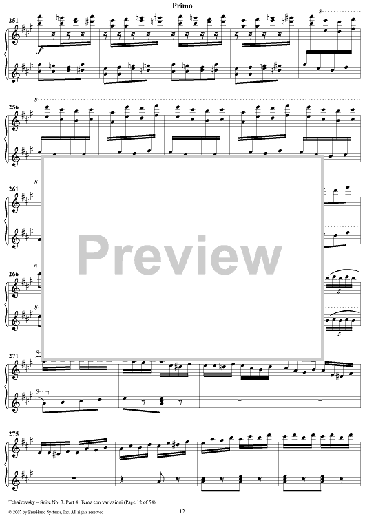 Digital Sheet Music for Suite No. 3 for Orchestra. Part 4. Tema con variazioni by Peter Ilyich Tchaikovsky scored for 1 Piano, 4 Hands; id:364649