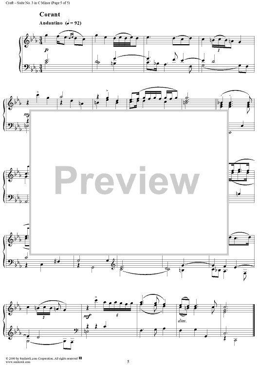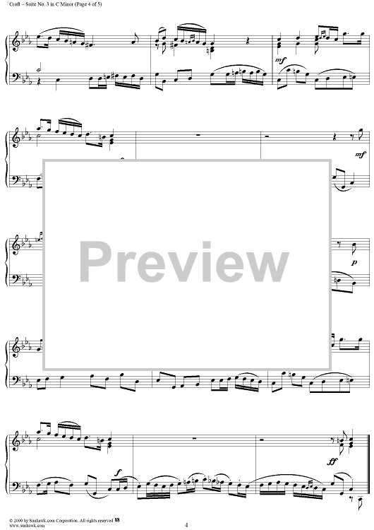 Digital Sheet Music for Suite No. 3 in C Minor by William Croft scored for Piano Solo; id:262425