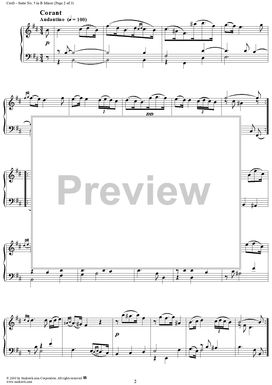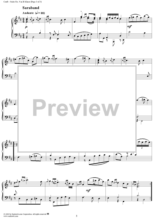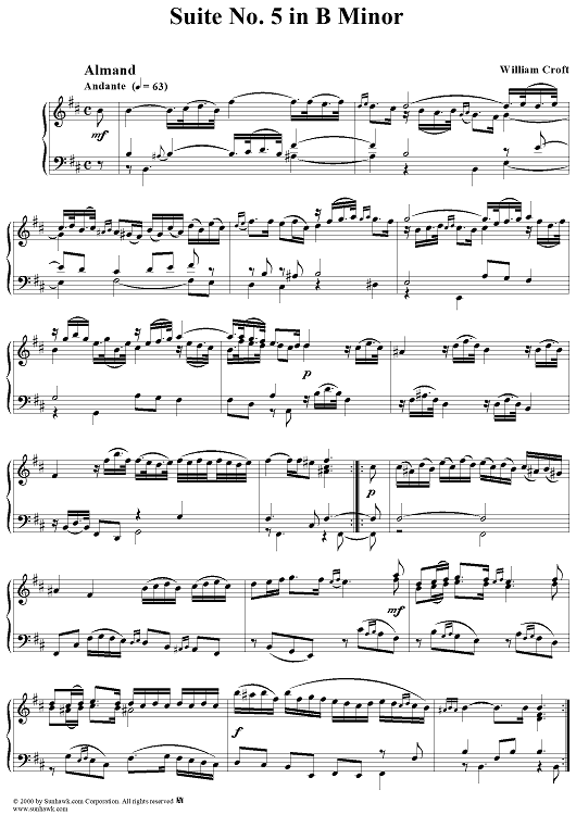 Digital Sheet Music for Suite No. 5 in B Minor by William Croft scored for Piano Solo; id:262433