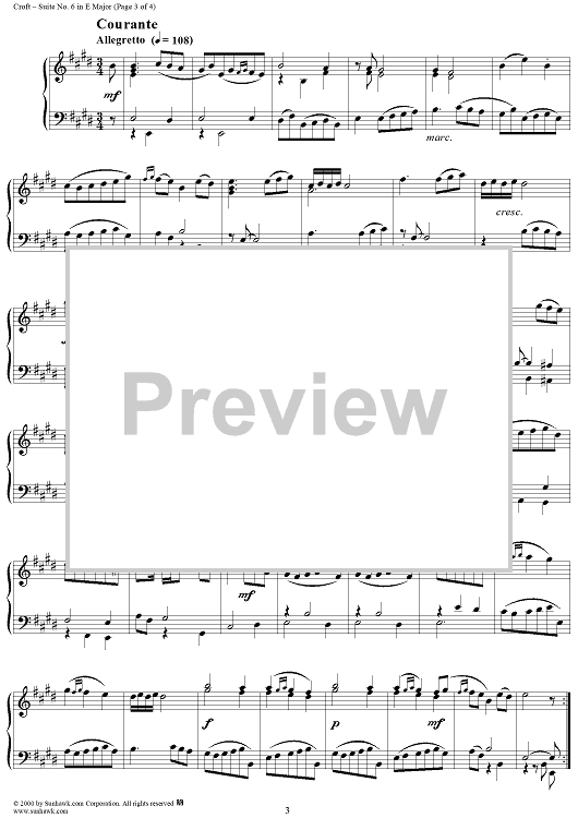 Digital Sheet Music for Suite No. 6 in E Major by William Croft scored for Piano Solo; id:250221