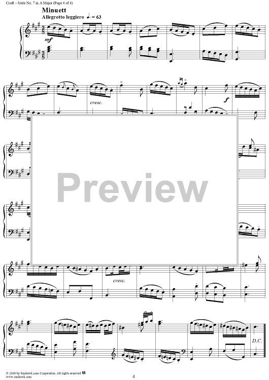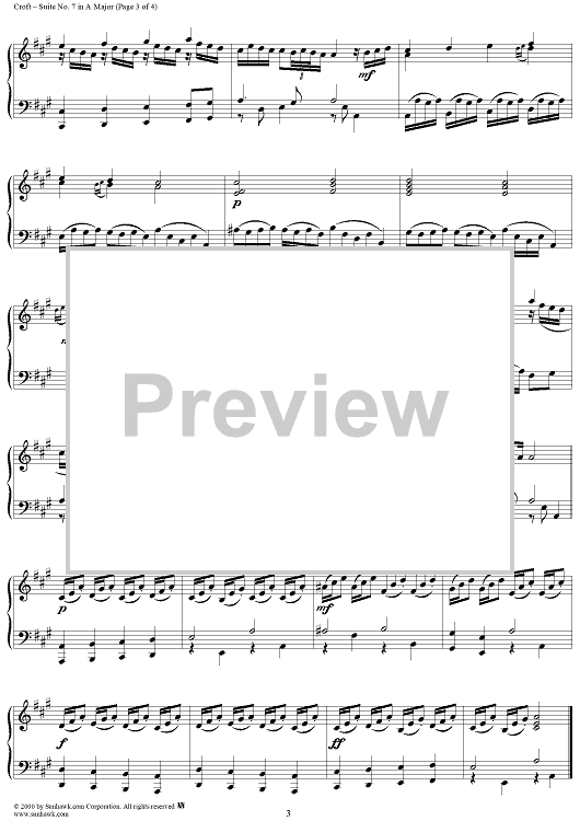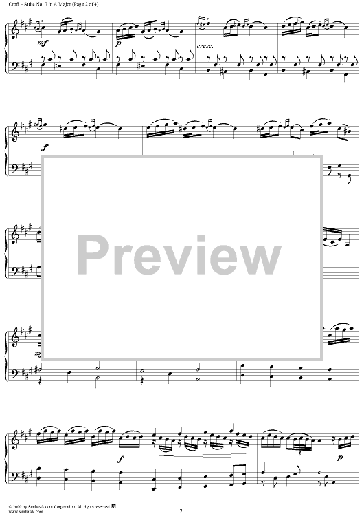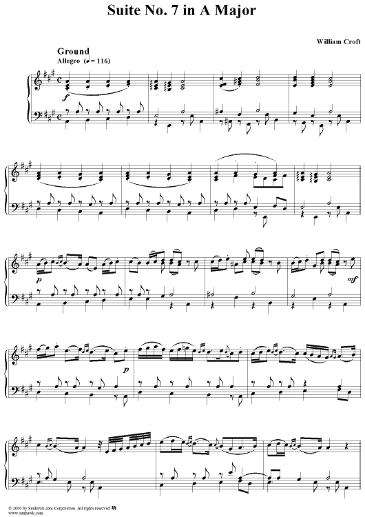 Digital Sheet Music for Suite No. 7 in A Major by William Croft scored for Piano Solo; id:264688