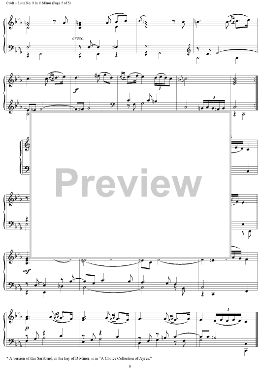 Digital Sheet Music for Suite No. 9 in C Minor by William Croft scored for Piano Solo; id:255570