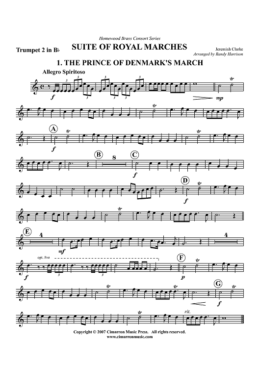 Digital Sheet Music for Suite of Royal Marches - Trumpet 2 in B-flat by Jeremiah Clarke, Randy Harrison scored for Brass Quintet; id:365688