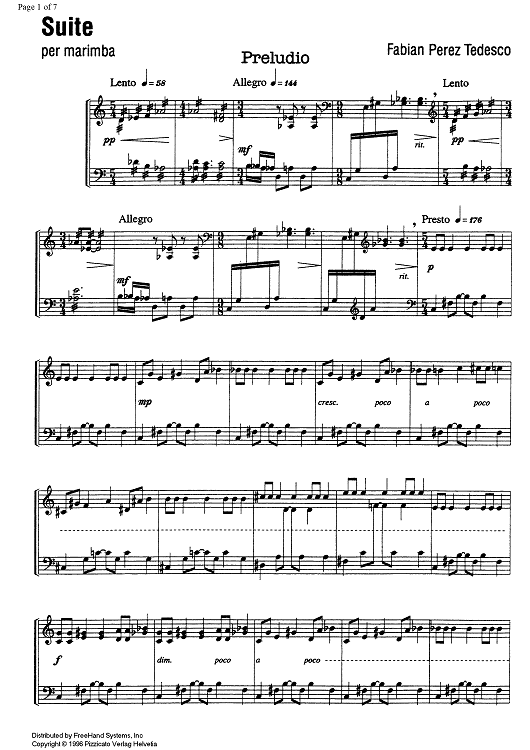 Digital Sheet Music for Suite by , Fabian Perez Tedesco scored for Marimba; id:333731