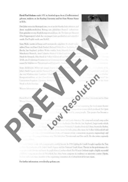 David Paul Graham's Suite combines three contrasting movements, which can also be performed individually: the Prelude, which is characterized by quarter-note steps, the Arietta, reminiscent of his teacher Henze, and the breathtaking Fuga.