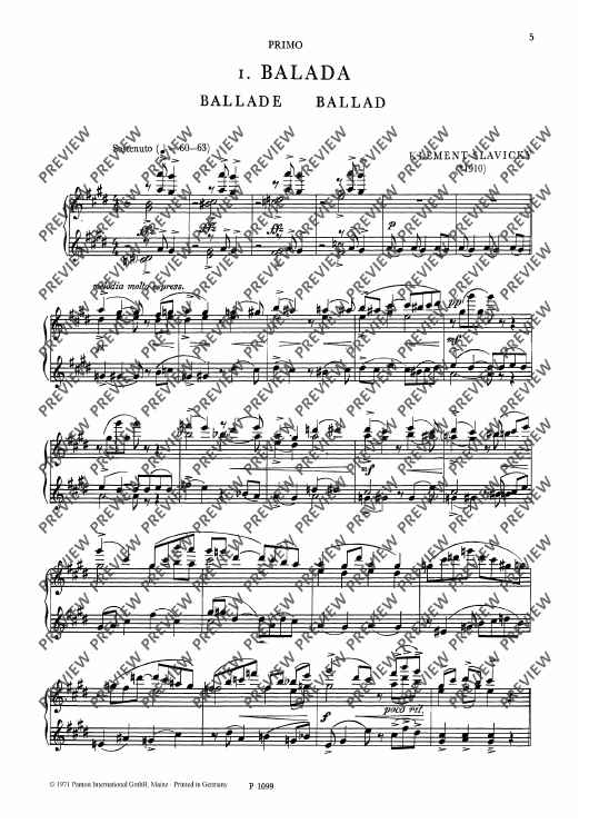 Digital Sheet Music for Suite by Klement Slavický scored for Piano (4 Hands); id:501630