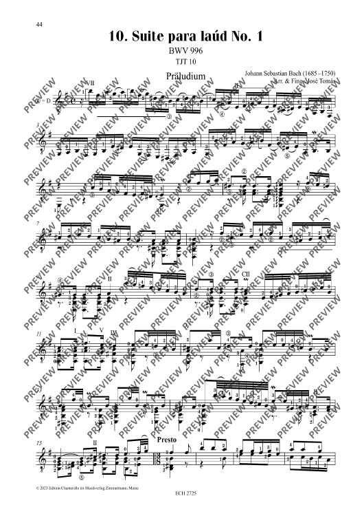 Digital Sheet Music for Suite para laúd No. 1 by Johann Sebastian Bach, José Tomás scored for Guitar; id:500246