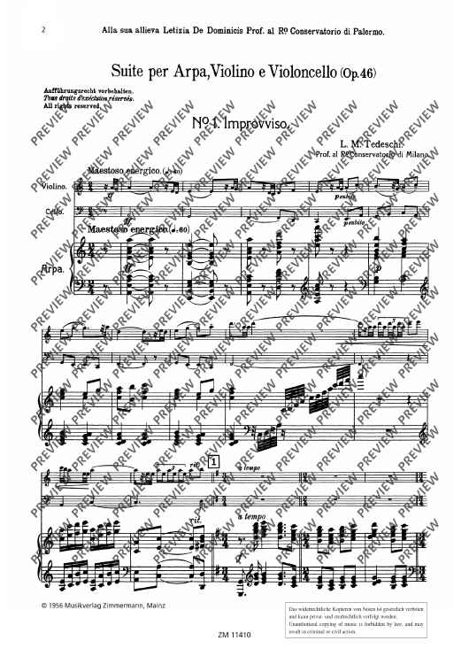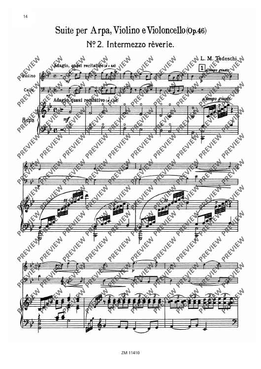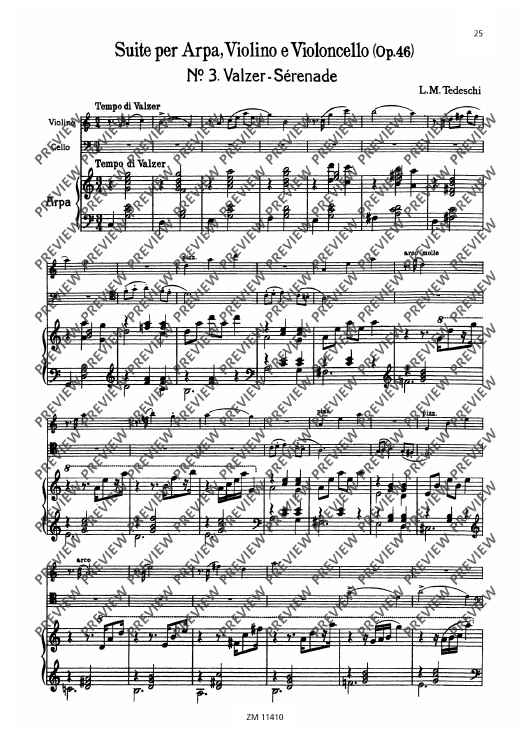 Digital Sheet Music for Suite - Score and Parts by Luigi Tedeschi scored for Harp, Violin And Cello; id:497778