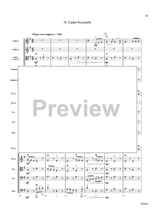 This four-movement suite is based on French folk songs and was specifically written for groups that may not be ready for St. Paul’s Suite or Capriol Suite, but still want to be able to dig into a substantial piece. In addition to the variety of styles, keys and time signatures, the last movement playfully pays homage to Holst’s The Dargason. A fabulous addition to the repertoire! (7:30)