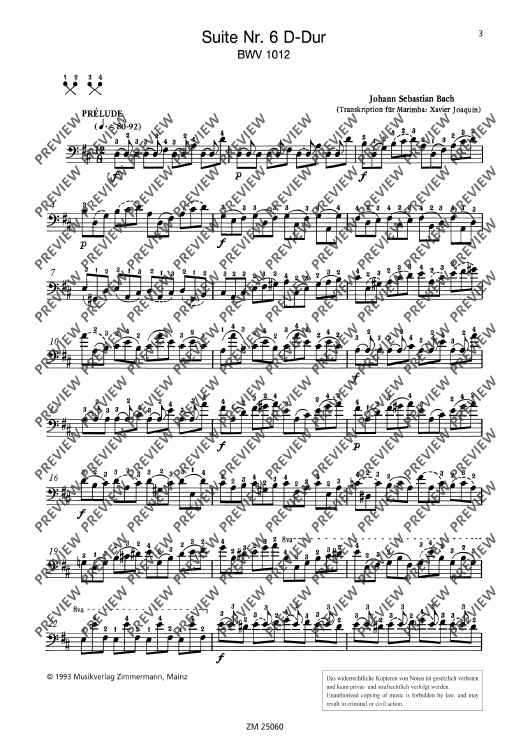 "Suite VI in D major" Sheet Music by Johann Sebastian Bach