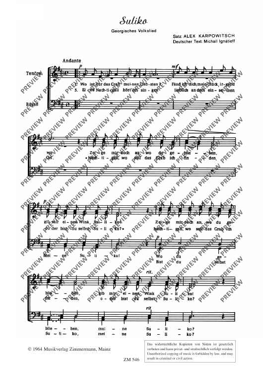 Digital Sheet Music for Suliko by Alex Karpowitsch scored for Men's Choir; id:496705