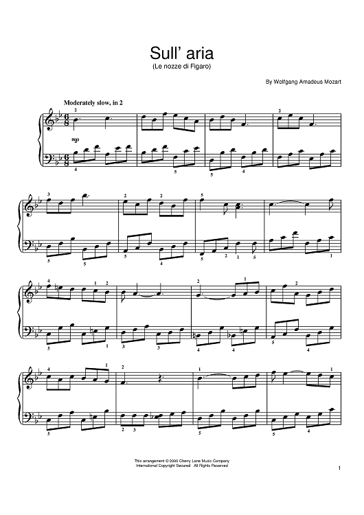 Digital Sheet Music for Sull'aria by Wolfgang Amadeus Mozart scored for Easy Piano; id:391259