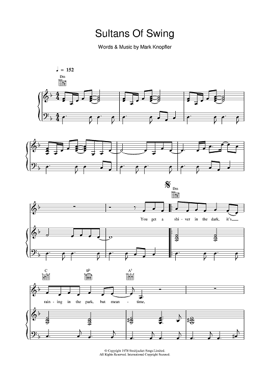 Digital Sheet Music for Sultans Of Swing by Dire Straits scored for Piano/Vocal/Chords; id:378061