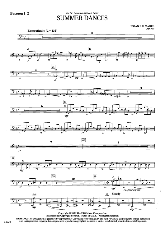Digital Sheet Music for Summer Dances - Bassoon 1-2 by Brian Balmages scored for Concert Band; id:442568